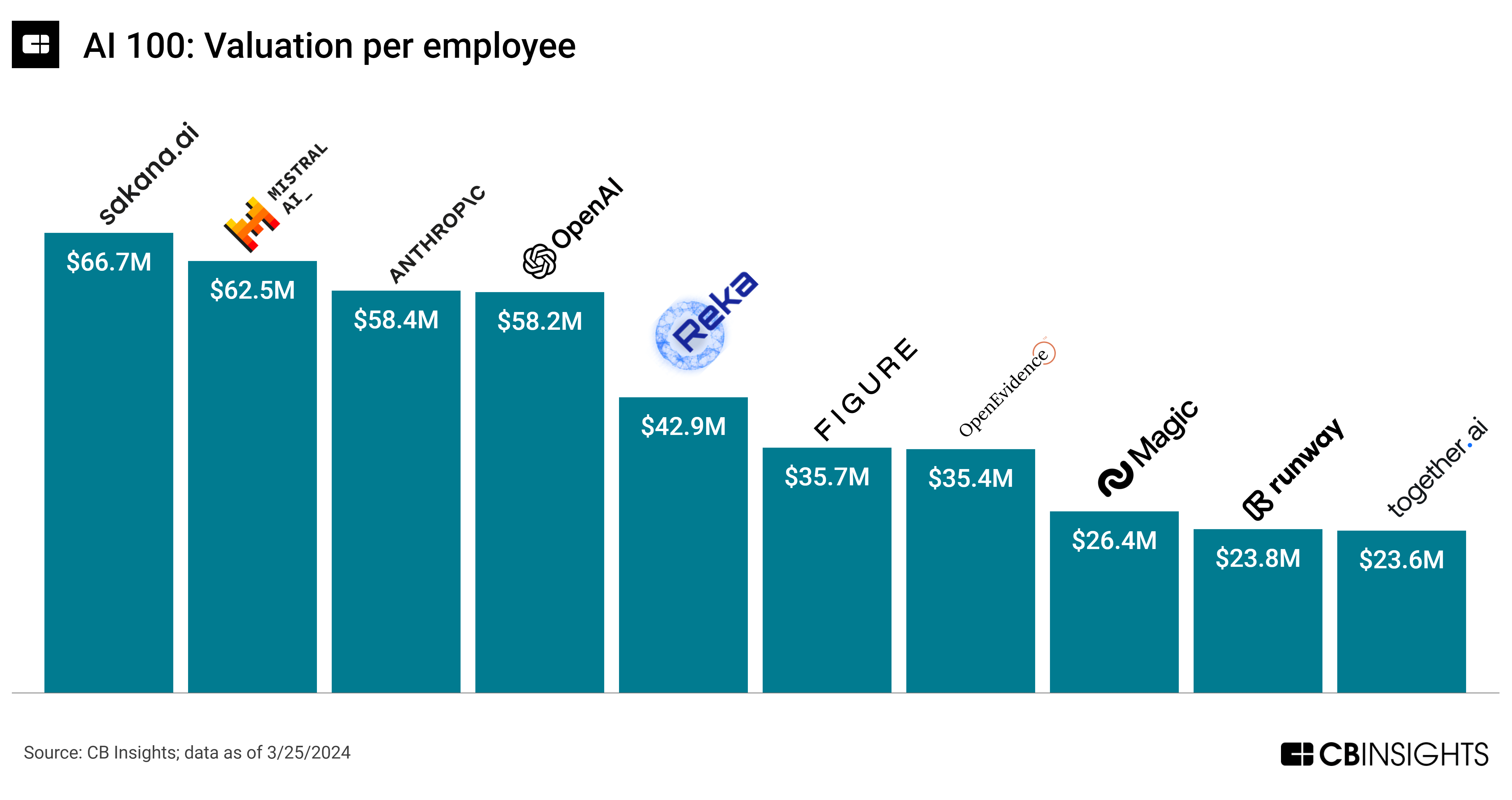 Meanwhile, Sakana AI — founded by one of the authors of the seminal Google research paper on Transformers — has the highest valuation per employee, at $67M. (It had just 3 employees when it earned its $200M valuation in early 2024.) Sakana is working on new “nature-inspired” AI architectures and recently released 3 Japanese-language models.