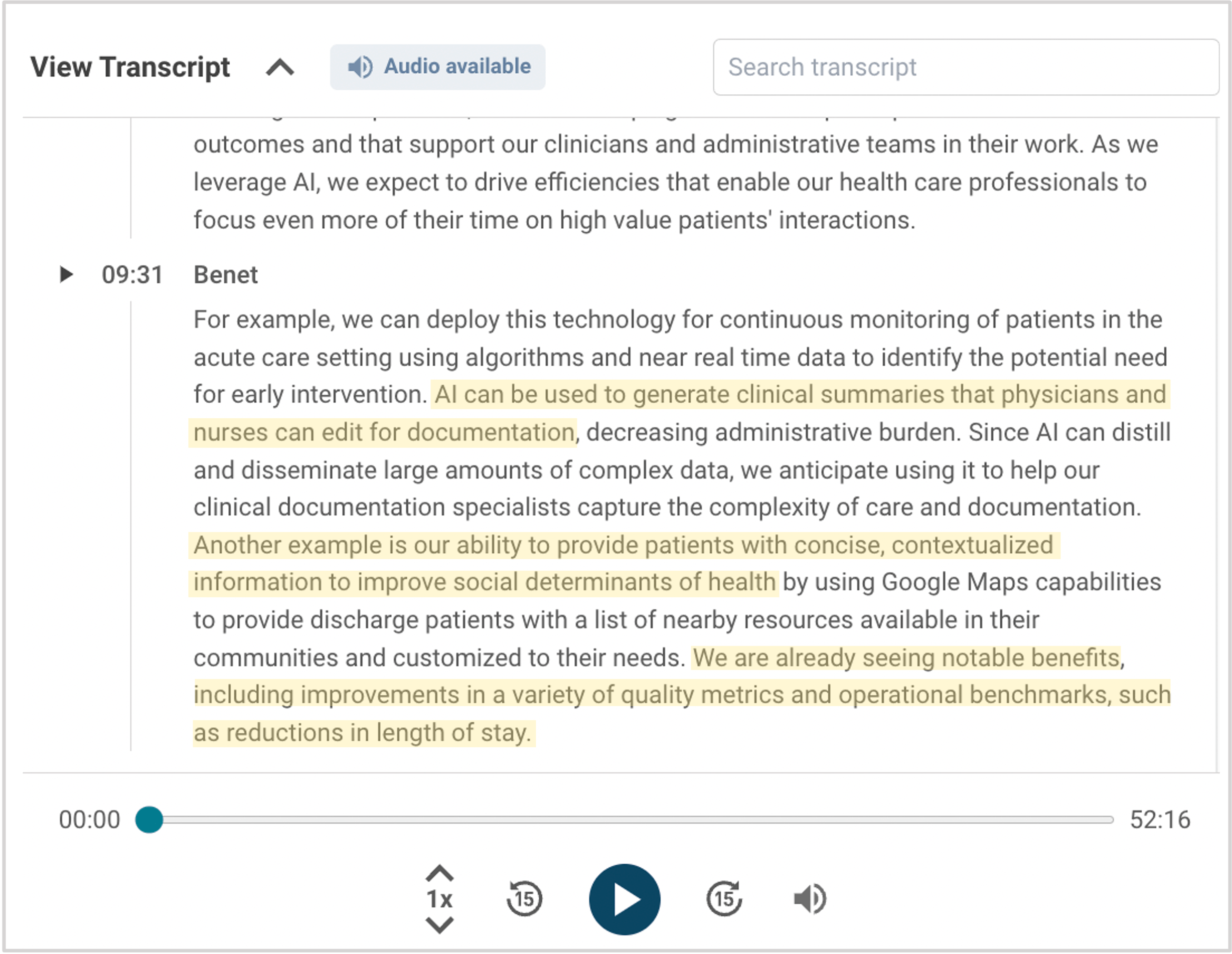 For example, Community Health Systems’ EVP of clinical operations, Miguel Benet, highlighted how AI could be deployed to streamline clinical documentation on an earnings call in Q4’23. He also discussed how CHS is using AI to provide patients with relevant information regarding local resources upon discharge — an initiative that has already yielded positive results, such as reductions in length of stay.