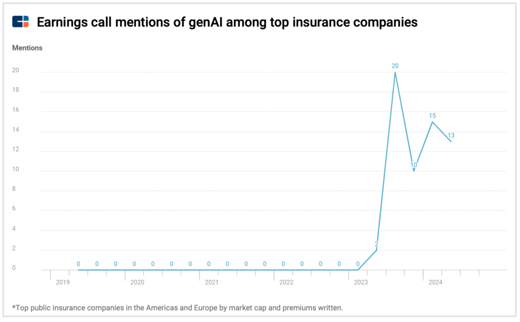The technology has been top of mind for major insurers such as Cigna, Sun Life, and Munich Re, with discussion on corporate earnings calls surging over the past year.