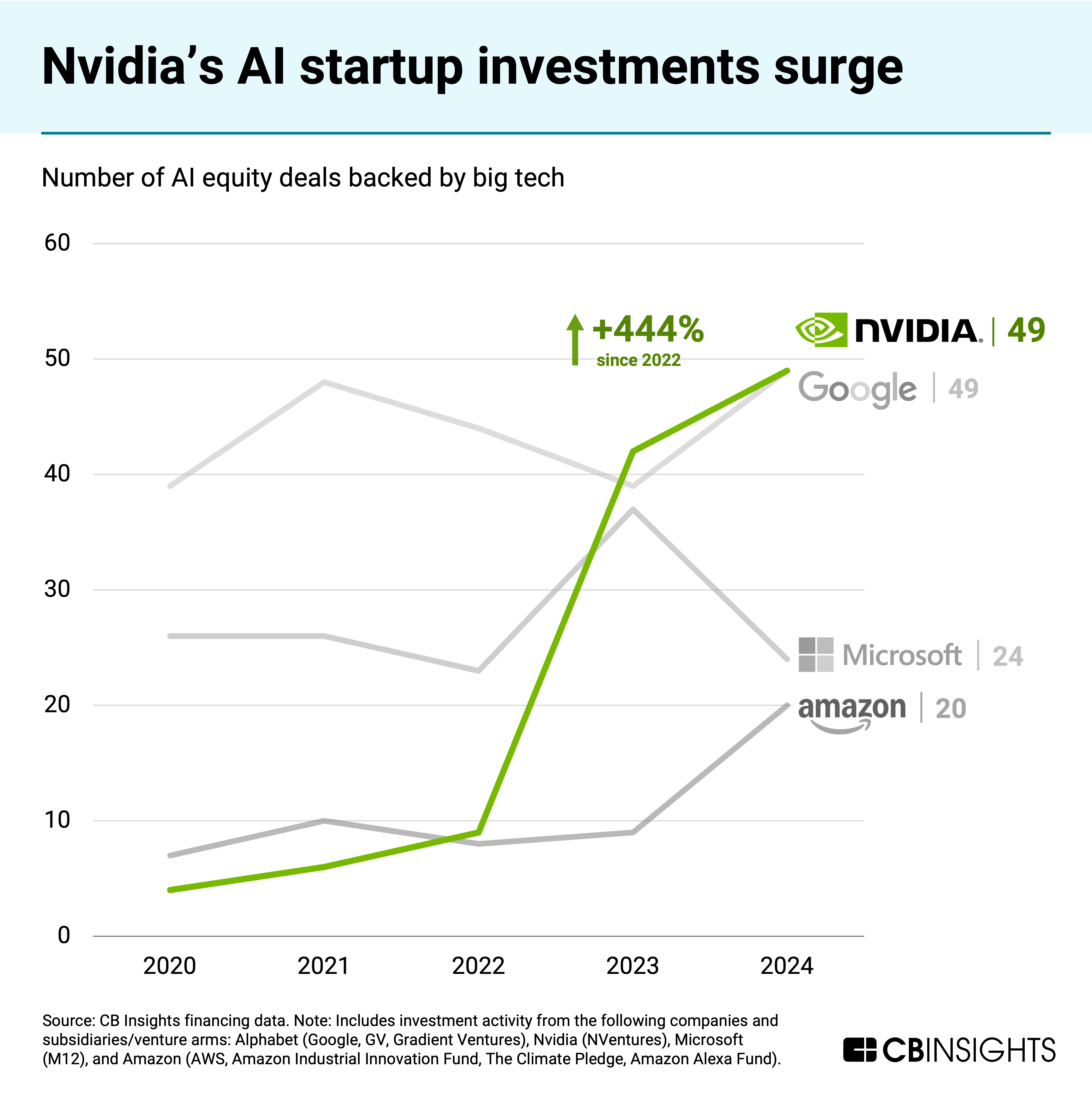 Nvidia has leapfrogged other big tech companies like Microsoft and Amazon in AI dealmaking.
