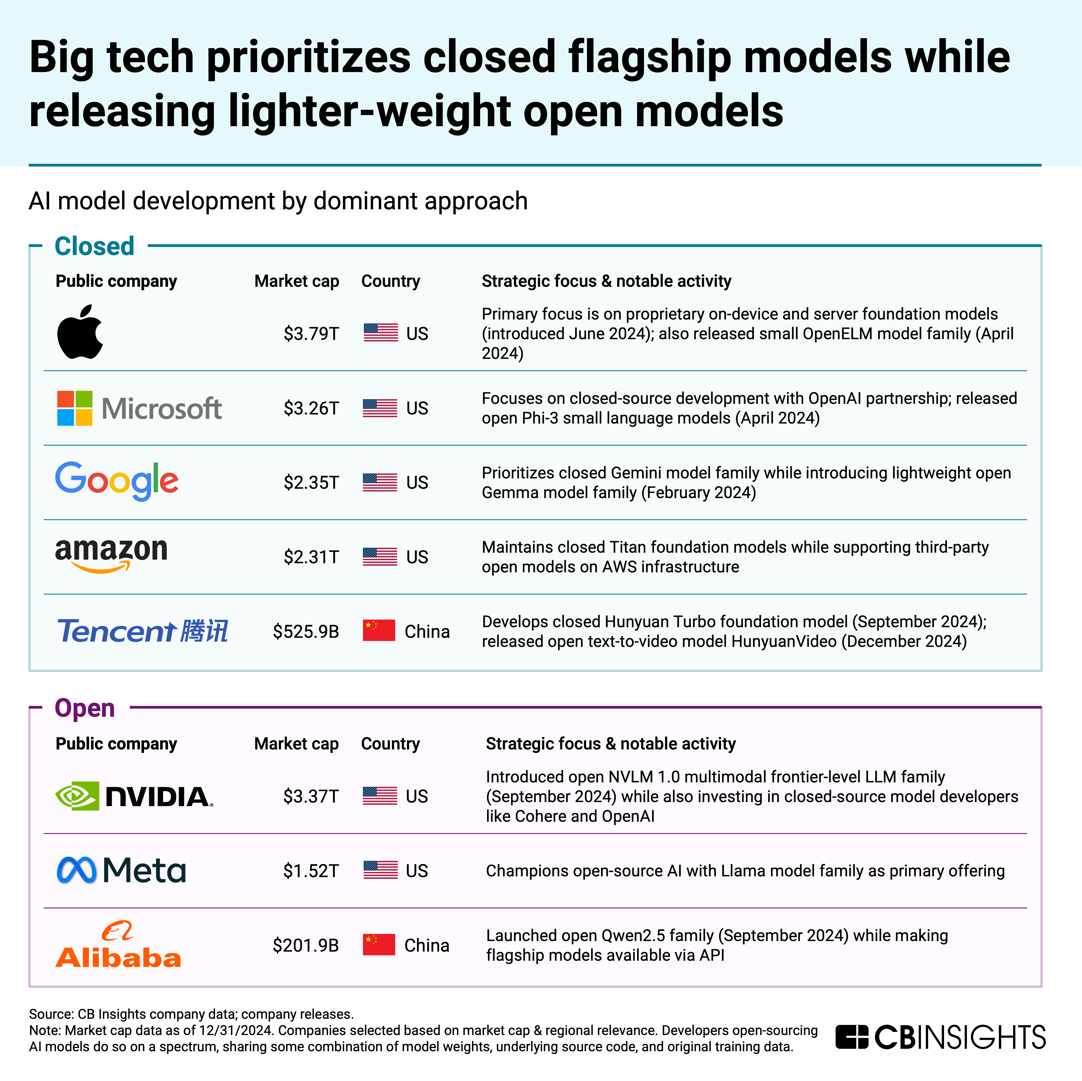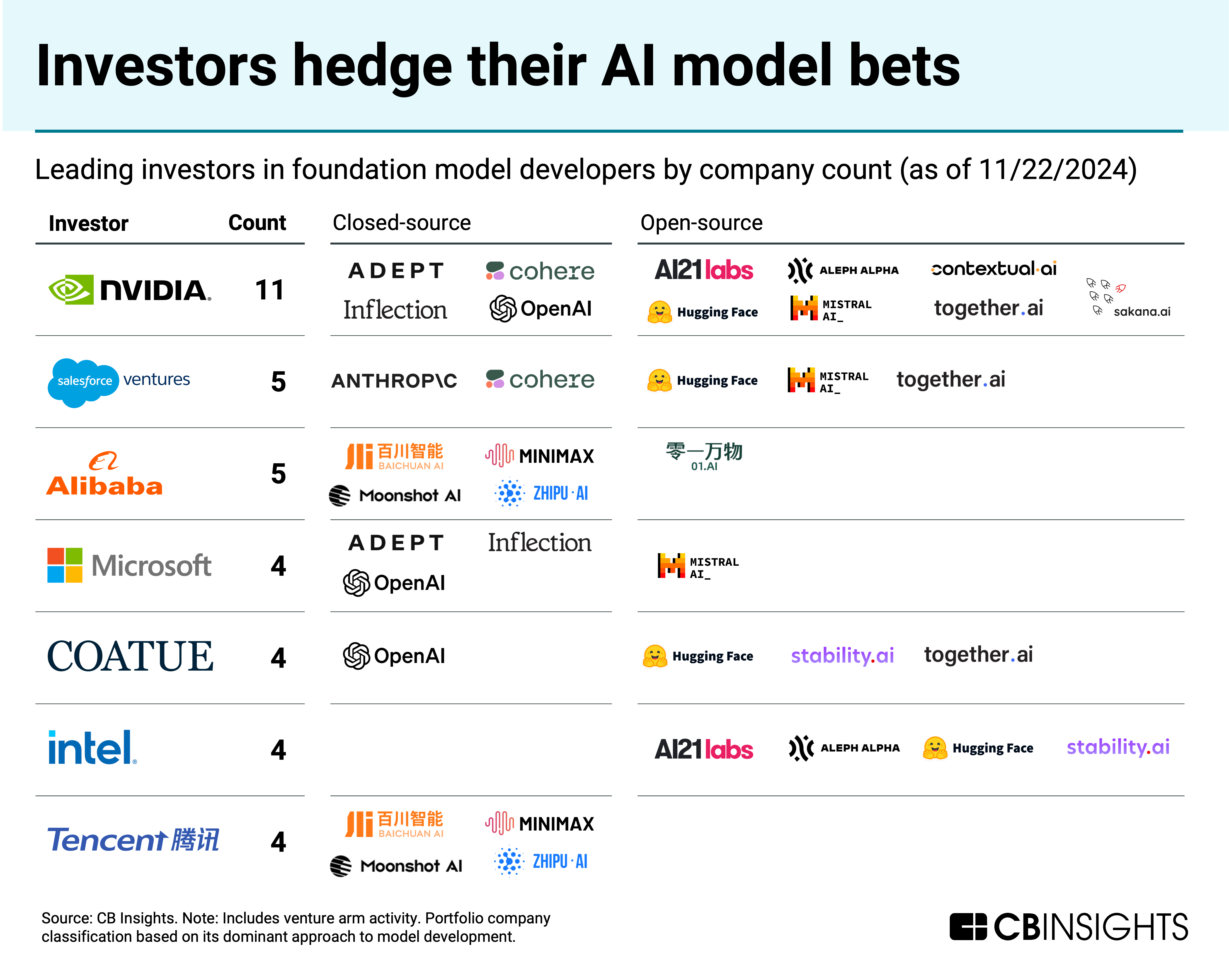 Below, we use CB Insights data to map out the open-source and closed-source AI landscape. Our analysis focuses on foundation models — the powerful, general-purpose AI systems that form a critical infrastructure layer.