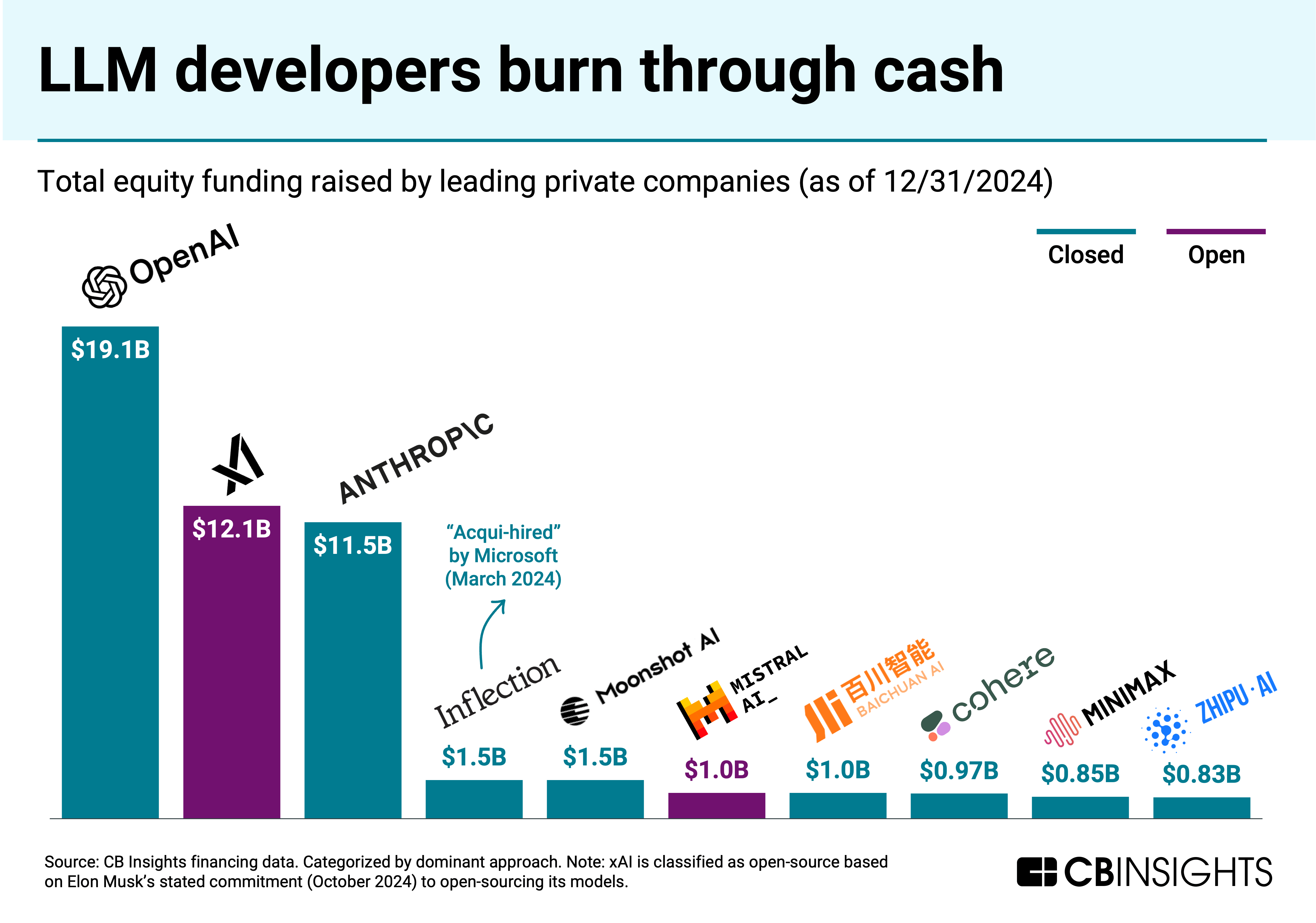 - Closed-source developers lead the private market in equity funding