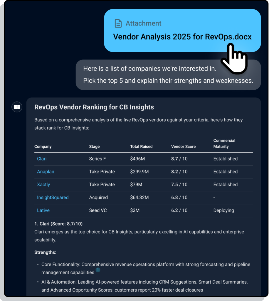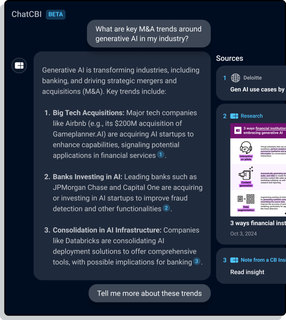 ChatCBI includes ready-to-run use cases. Want an M&A deep dive? Market analysis? Competitive teardown? Just tap the magic button.