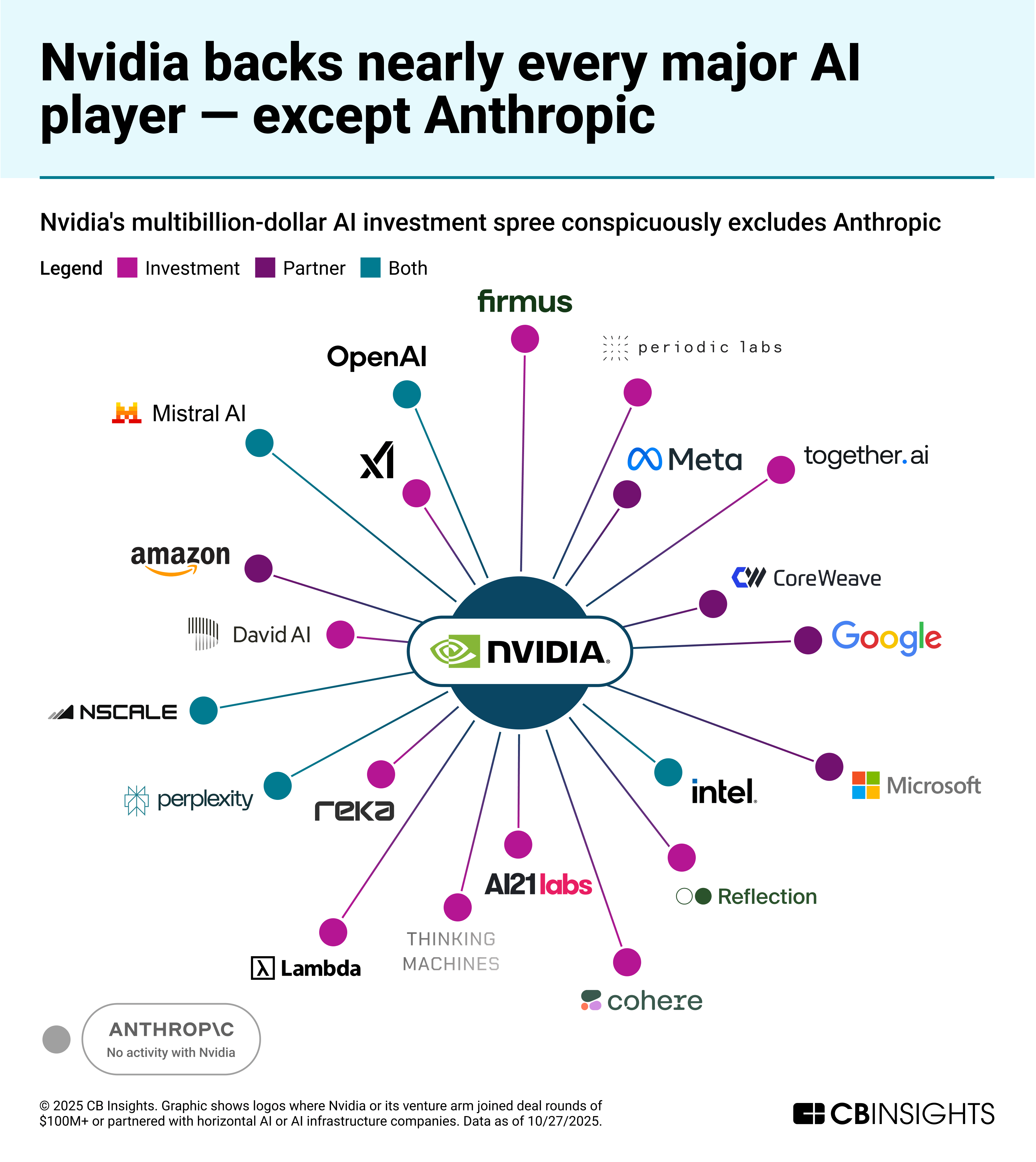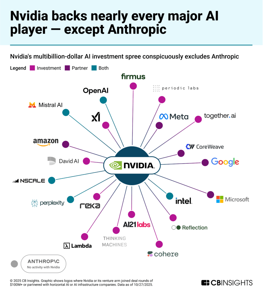 Anthropic is the notable exception to Nvidia’s investments across leading AI companies. The two have recently clashed over export controls, signaling a strained relationship between Nvidia and Anthropic that continues to this day.