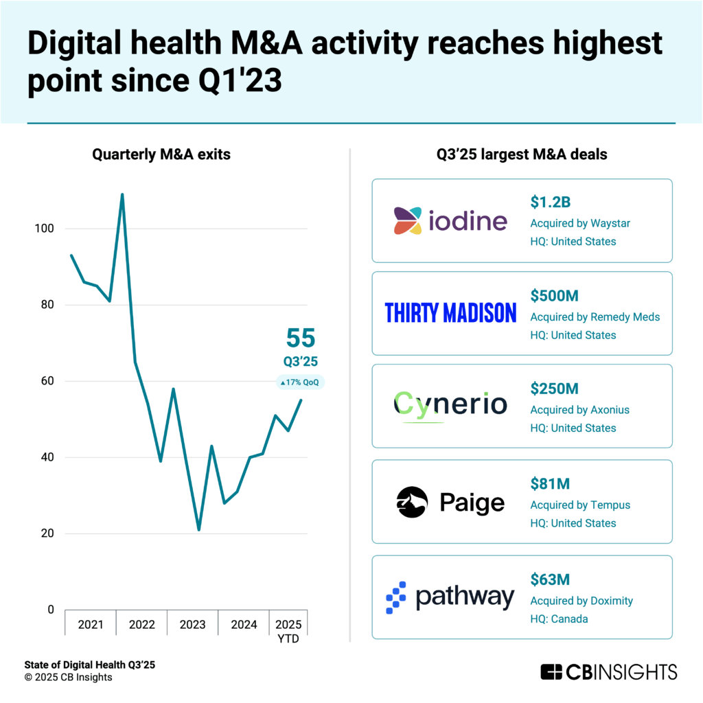 The combination of rising M&A activity and steady IPO flow demonstrates that exit pathways are opening for digital health companies, providing crucial validation for the sector after years of constrained liquidity.